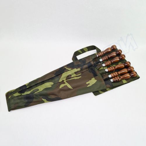 Набор состоит из 6 шампуров с деревянной ручкой 50см, чехла и СКЛАДНОГО МАНГАЛА